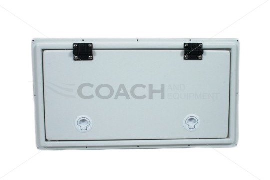 The Battery Box Collar and Door is manufactured by Coach and Equipment. This Battery Box Collar and Door comes pre-assembled with pre-drilled holes. The Battery Box Door is 24" x 12" and features D-Ring latches. Coach and Equipment Part Number: # 5559034