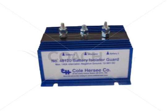 The Cole Hersee Battery Isolator Guard is for vehicles with two batteries, these devices electrically isolate the batteries to prevent the battery with the higher charge from draining into that with the lower charge.The Cole Hersee Battery Isolator Guard was formerly Coach and Equipment Part # 5045.Hersee Manufacture Number:# 48120