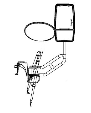The Rosco Mirror Assembly for a 2008 Ford bus includes a rear and cross view mirror, LED turn signal, 28 in. E-Z bracket, and a 2008 Ford fender mount. This Rosco Mirror Assembly includes part numbers: