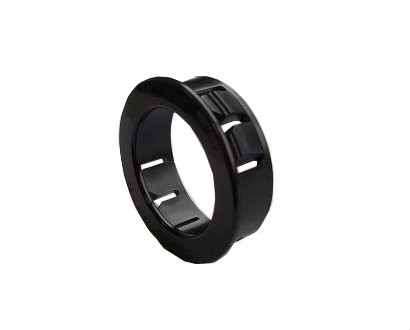 Fastenal's Black Nylon 1 3/8" snap bushing is made to reduce the trade size of a taped hole or hub. Its locking fingers snap into holes with fingertip pressure, allowing it to withstand a pushback force of up to 35 pounds.Part Number:6034