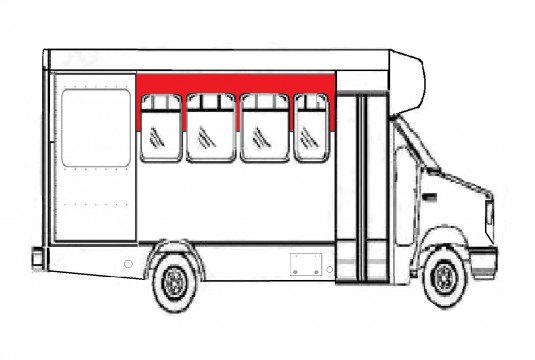 Right Side Exterior Top Panel 158"WB26"W x 79 3/8"L.040 AluminumPre-Painted OEM WhiteRED HIGHLIGHTED AREA SHOWS PART LOCATION ON BUS Please call Coach and Equipment Parts Sales1-800-724-8464 with your VIN, to confirm this is the correct panel for your bus.
