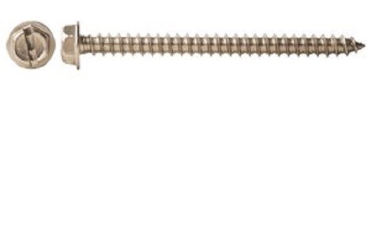 Hex Head Screw #14-10 X 1", Stainless. Drive: Hex - Slotted Head: Indented Hex Washer Grade: 18-8 Thread Size: 10 Finish: Plain Diameter: #14 Material: Stainless Steel Diameter - Thread Size: #14 - 10 Point: Type A Type: Sheet Metal Screw Length: 1" Sheet metal screws are characterized by a sharp point. As a result, they are faster, easier and safer to install. Fastenal Manufacture Part Number: 1173153