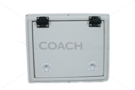 The Battery Box Collar and Door is manufactured by Coach and Equipment. This Battery Box Collar and Door comes pre-assembled with pre-drilled holes. The Battery Box Door is 19" x 15". and features D-Ring latches. This Battery Box Door is for a single battery. Coach and Equipment Part Number: # 5559085
