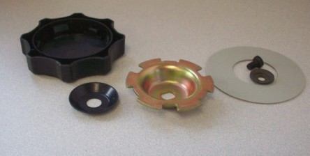 LTD Recliner Knob — Part #: 12450 Metal Cone — Part #: 912446 Screw — Part #: 99163 Small Bell Washer — Part #: 560353" Gray Plastic Donut Washer — Part #: 22697