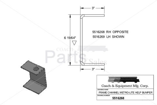 The right side Metro-Lite HELP ® Bumper Brace is a bus part manufactured and fabricated by Coach and Equipment. This brace is used for extension of the bus frame on Romeo RIM Metro-Lite HELP ® bumpers.Coach and Equipment Part Number:# 5516268