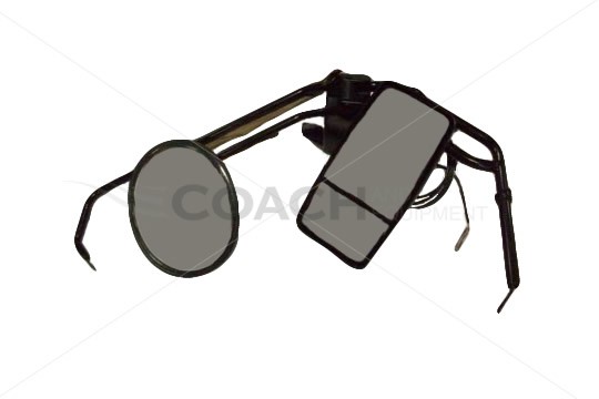 The Rosco Mirror Assembly for a 2008 Ford bus includes a rear and cross view mirror, LED turn signal, 28 in. E-Z bracket, and a 2008 Ford fender mount. This Rosco Mirror Assembly includes part numbers: