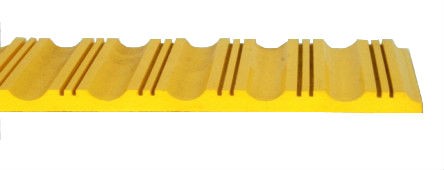This product is a ribbed yellow standee line that is made of heavy duty ribbed rubber strips. This product is 19" in length.