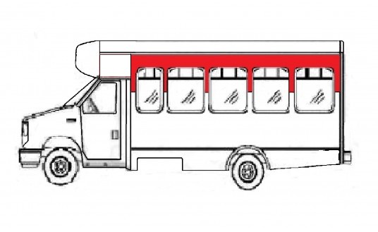 Left Side Exterior Top Panel Metro_Lite138" WB26"W x 143 3/8"L24Ga SteelPre-Painted OEM WhiteRED HIGHLIGHTED AREA SHOWS PART LOCATION ON BUS Please call Coach and Equipment Parts Sales1-800-724-8464 with your VIN, to confirm this is correct for your bus.